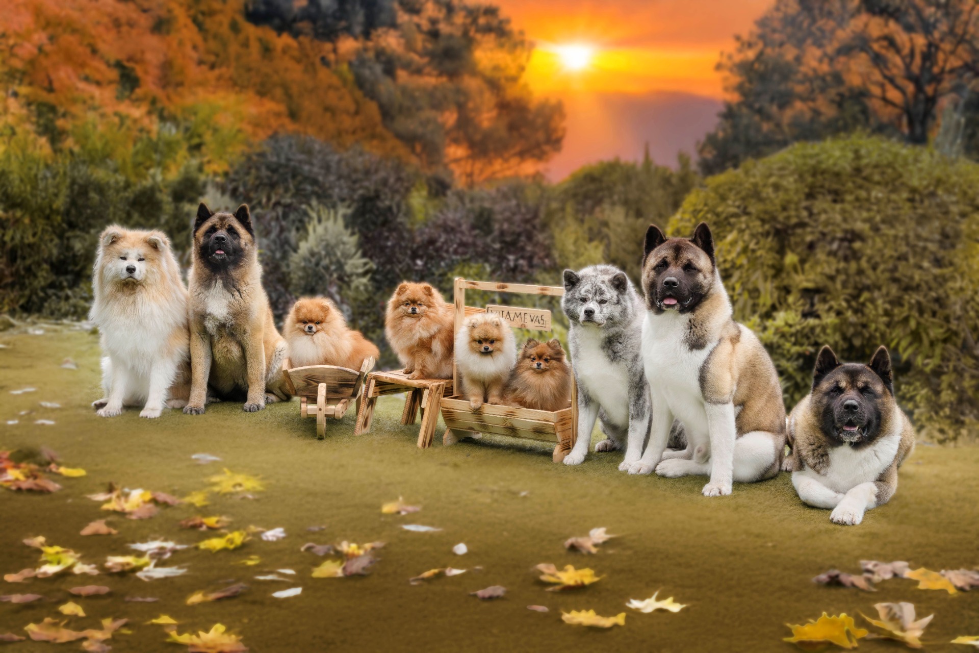 Jak šel čas a moji chlupatí kamarádi začali odcházet, začala jsem snít další sen. Chovat dvě naprosto rozdílně váhová plemena ( Pomeraniany cca 2,5kg a Americké akity cca 50kg ) s cílem, že budou všichni fungovat jako jedna smečka dohromady.